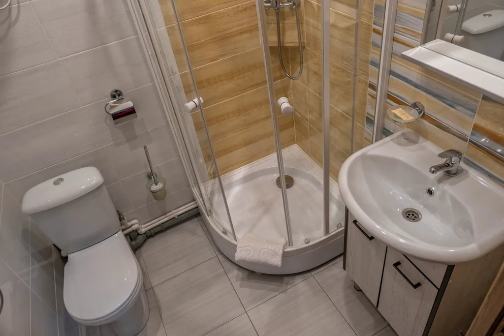 Номер выполнен в минималистичном стиле. А матовые тёплые цвета создают атмосферу домашнего комфорта и уюта.
