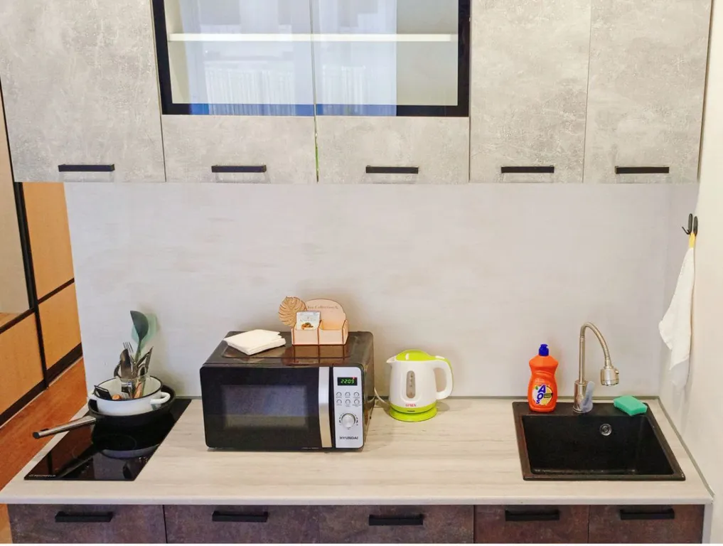 Полностью укомплектованная кухня и санузел с необходимыми средствами гигиены.